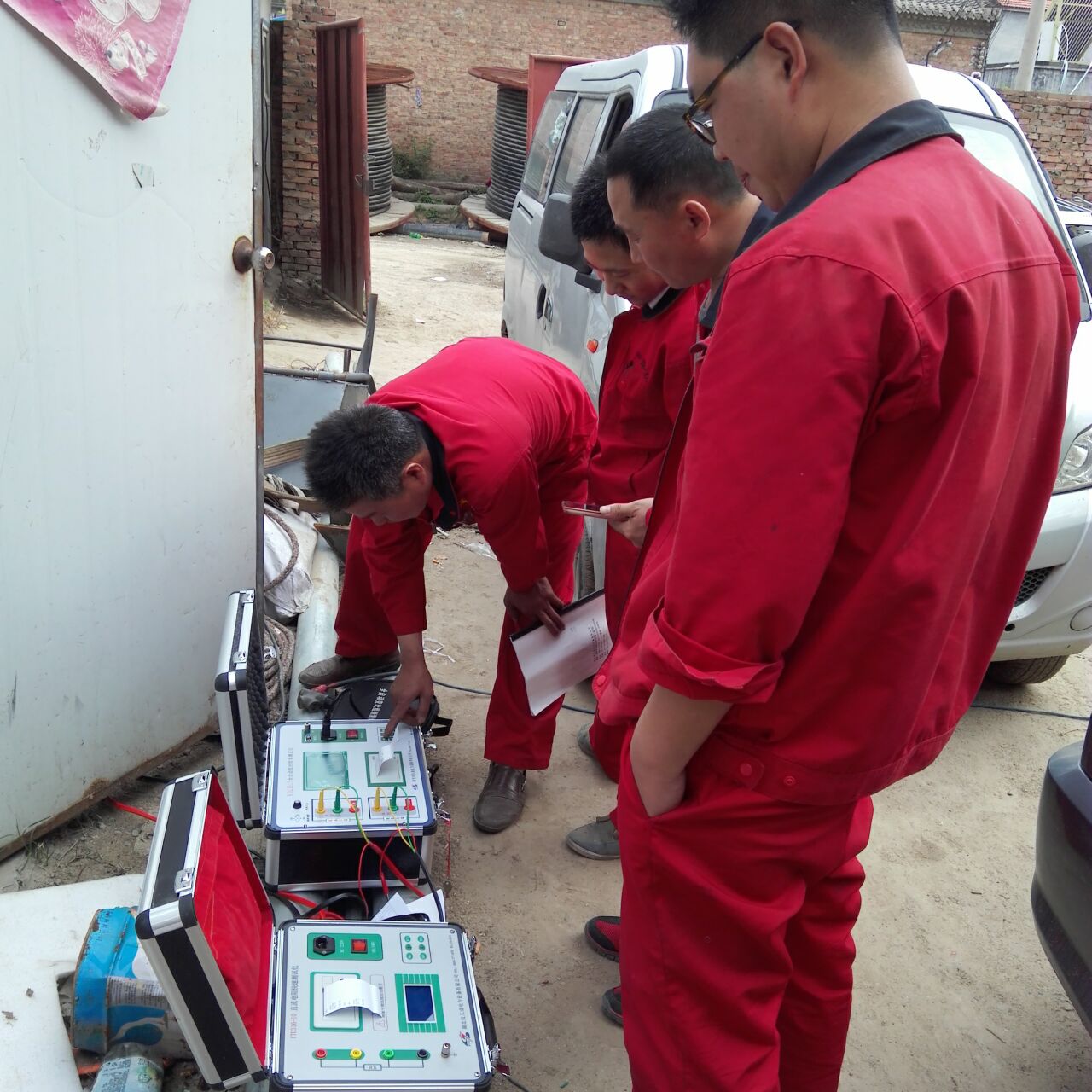 李工很快抵達現(xiàn)場,與客戶進行面對面的交流,了解客戶的需求和想法。然后開始講解設備,并認真講解怎樣安全操作設備。確??蛻裘靼琢税踩僮饕院螅罟ьI客戶一起做試驗——YTC850-135kVA/108kV變頻串聯(lián)諧振試驗裝置的測量,變頻串聯(lián)諧振由變頻電源、激勵變壓器(也可稱為勵磁變壓器)、電抗器和電容分壓器組成。被試品的電容與電抗器構成串聯(lián)諧振連接方式;分壓器并聯(lián)在被試品上,用于測量被試品上的諧振電壓,并作過壓保護信號;調頻功率輸出經激勵變壓器耦合給串聯(lián)諧振回路,提供串聯(lián)諧振的激勵功率。滿足多種試品的試驗要求,更方便現(xiàn)場使用,所以試驗進行的很順利。
