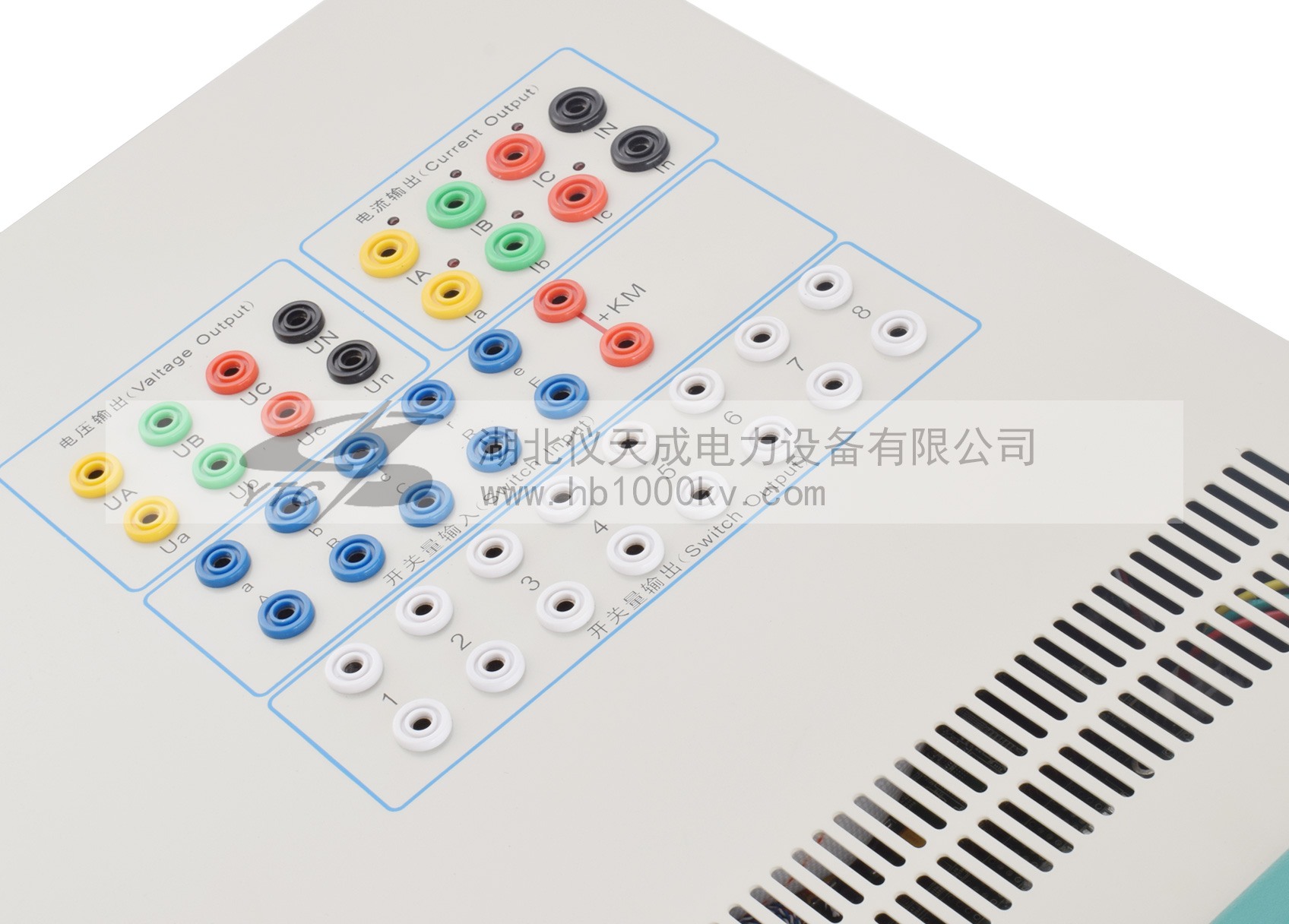 5、如果現(xiàn)場干擾較強或安全要求較高,試驗之前,請將電源線(3 芯)的接地端可靠接地或裝 置接地孔接地。
