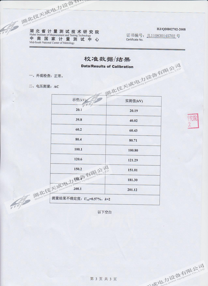 轉(zhuǎn)載:"YTC850-810kVA/270kV/45kV變頻串聯(lián)諧振試驗裝置的資質(zhì)證書" 請注明來源于儀天成電力。 更多技術(shù)問題請致電儀天成電力客戶服務(wù):027-87876585,技術(shù)部專線:027-87876585,在線客服:719388481